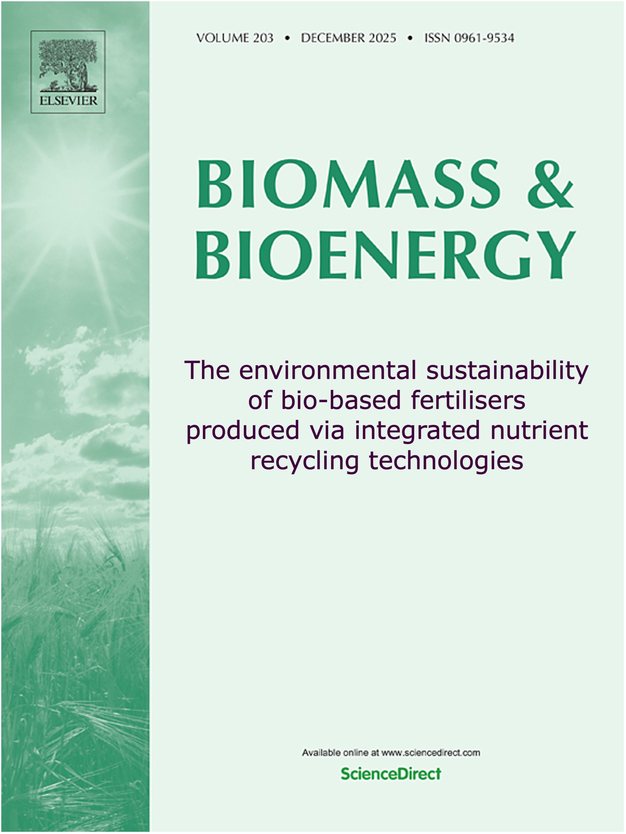 Elsevier article - The environmental sustainability of bio-based fertilisers produced via integrated nutrient recycling technologies |