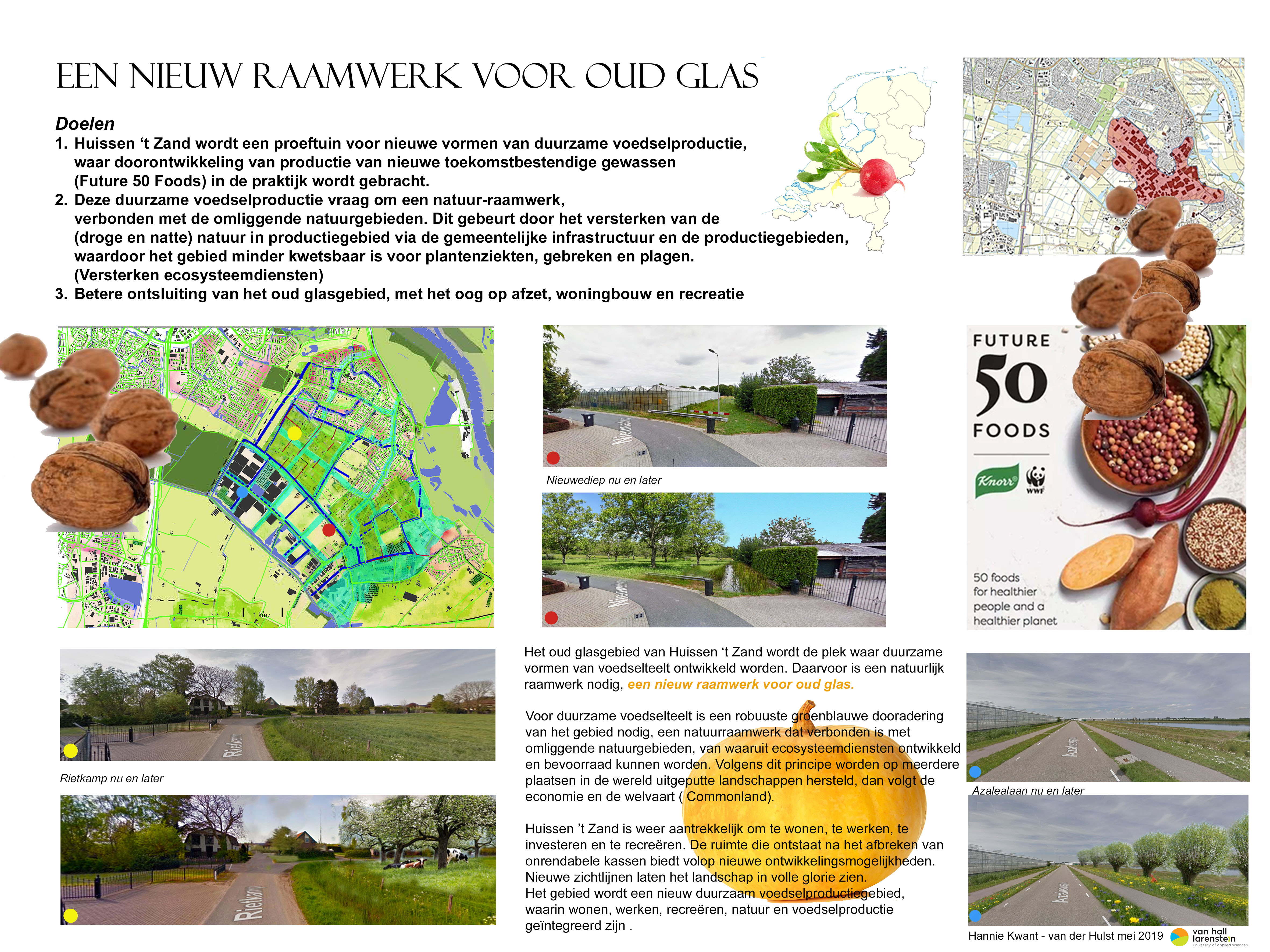 Het oud glasgebied van Huissen ‘t Zand wordt de plek waar duurzame vormen van voedselteelt ontwikkeld worden. Daarvoor is een natuurlijk raamwerk nodig, EEN NIEUW RAAMWERK VOOR OUD GLAS.